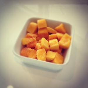 You can cut a whole fresh mango into chunks and freeze in baggies or glass containers or as I do … buy my frozen (no additives) mango at trader joes or even target and just open the bag.