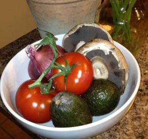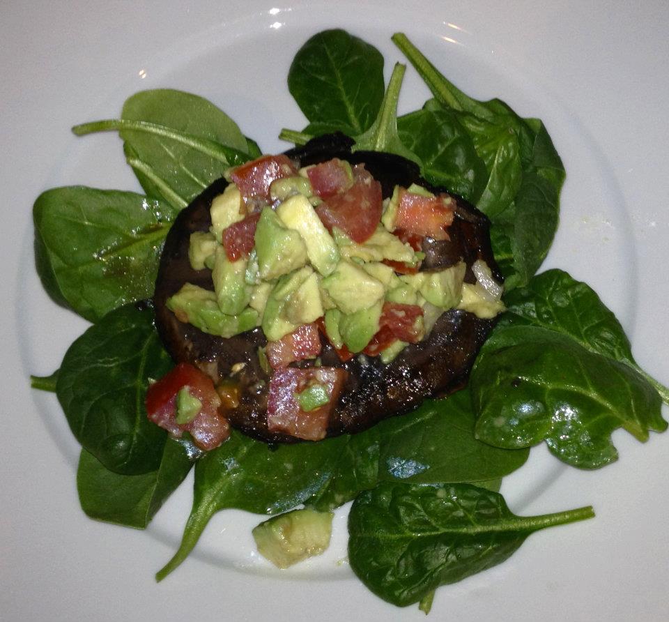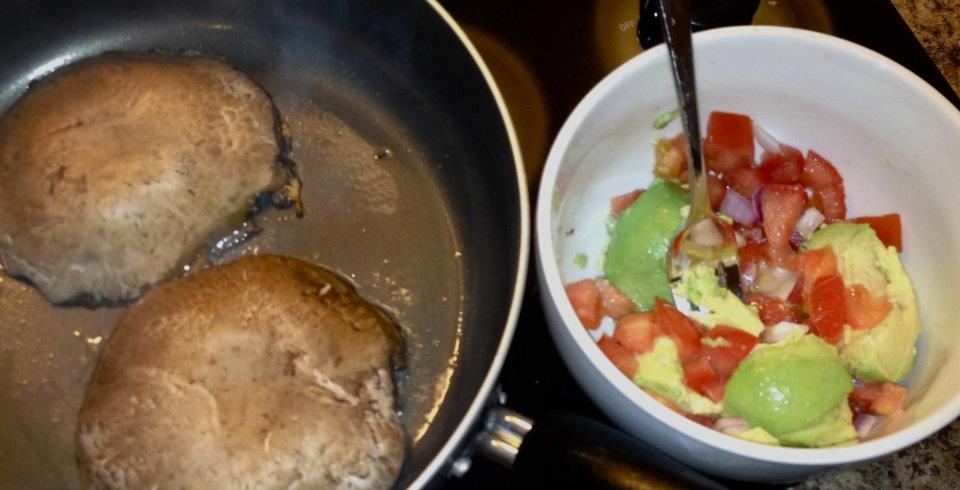 sautee portobello mushroom caps scoop side down in pan till brown on each side ( I use avocado oil) – mushroom should be tender ( I like them well done)