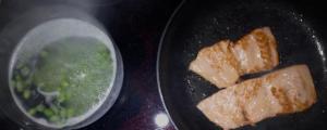 Plate Salmon on top of baby spinach with edamame and tomato on top.. salt / pepper to taste ! Create a great day !