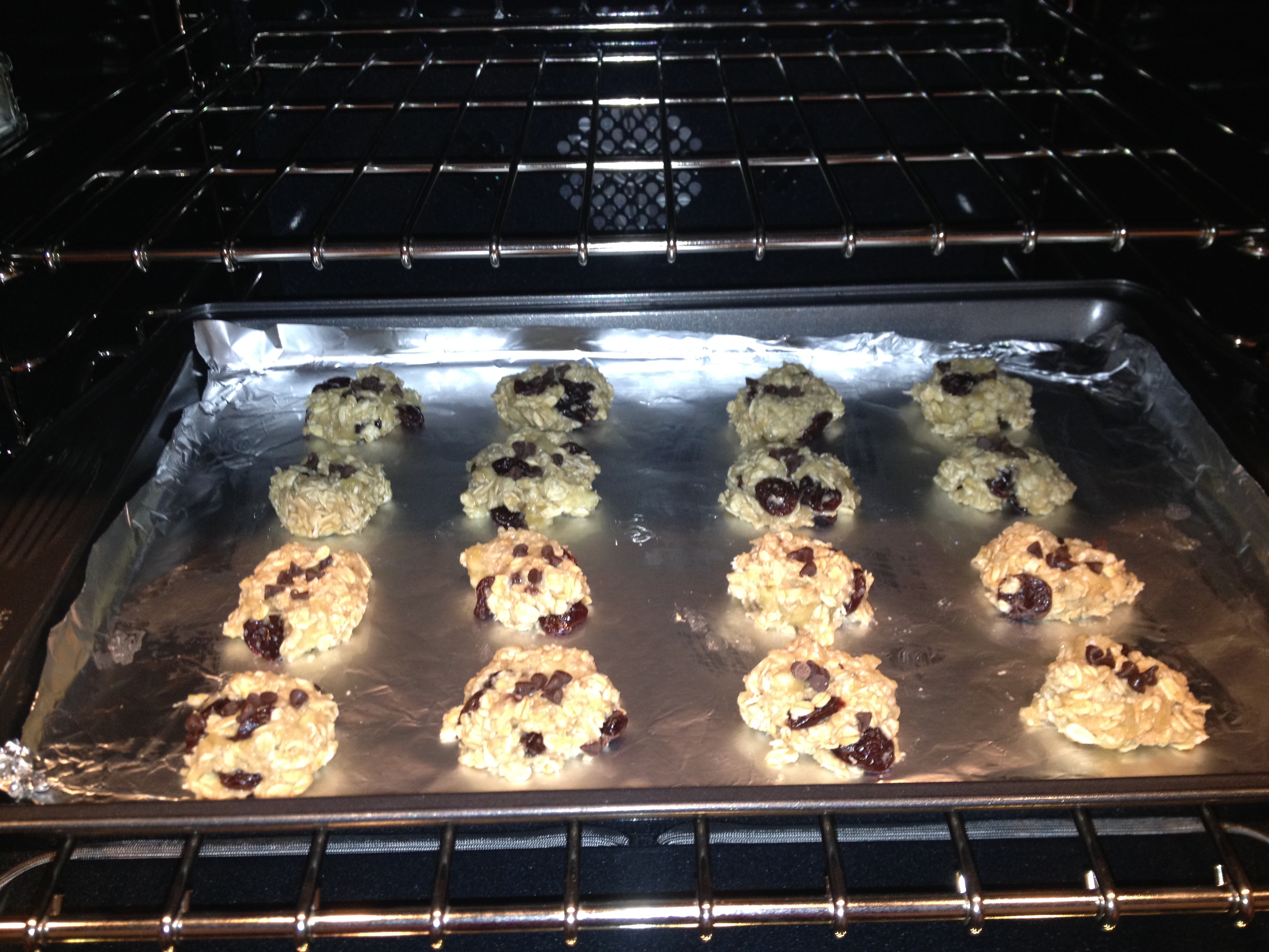 not sure what you mean not sticking together.. its shouldnt be ‘soupy’.. you should have little mounds of oats and banana clusters.. I usually form in a ball then press down .. they will not bake down so where they are on the pan is how they will be.. its not dough.. just oats.. I hpe you like them.. btw.. let them sit on the pan /tray and cool before trying to remove.. and I keep them in the fridge.. just how I like them.. just made a batch yesterday.. two batches actually.. I froze some for easter baskets.. enjoy..
