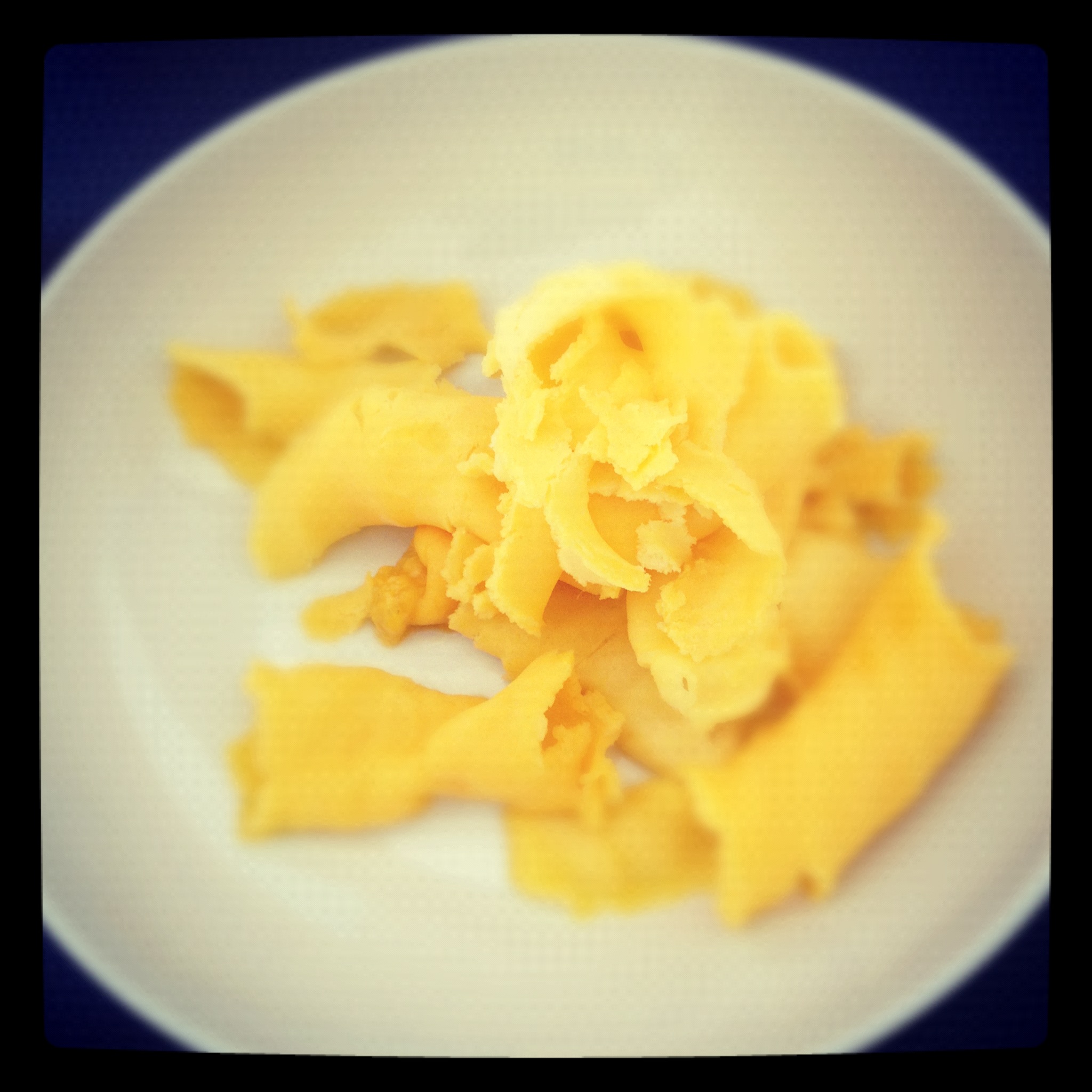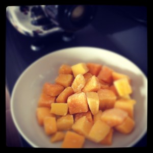 Freeze ( peeled) fuit… see bowl of frozen mango chunks to left..