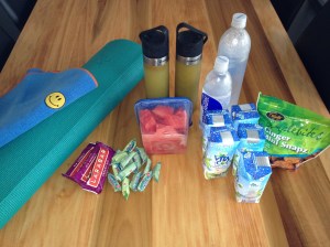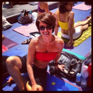 After making the decision to GO.. there was no holding back.. The night before I juiced my favorite Green Lemonade and immediately put it in the freezer .. I also put about 6 vita coco’s in there too.. I prepared my gear, yogi toes towel ( my fav one with my happy face applique that I add to all my towels) yoga mat, sun screen, and cotton pants that I convert to shorts and top.. . last thing I needed was lycra… after all the temp was estimated 96 degrees .. and that was NOT in Times Square doing Yoga with 2000 people.