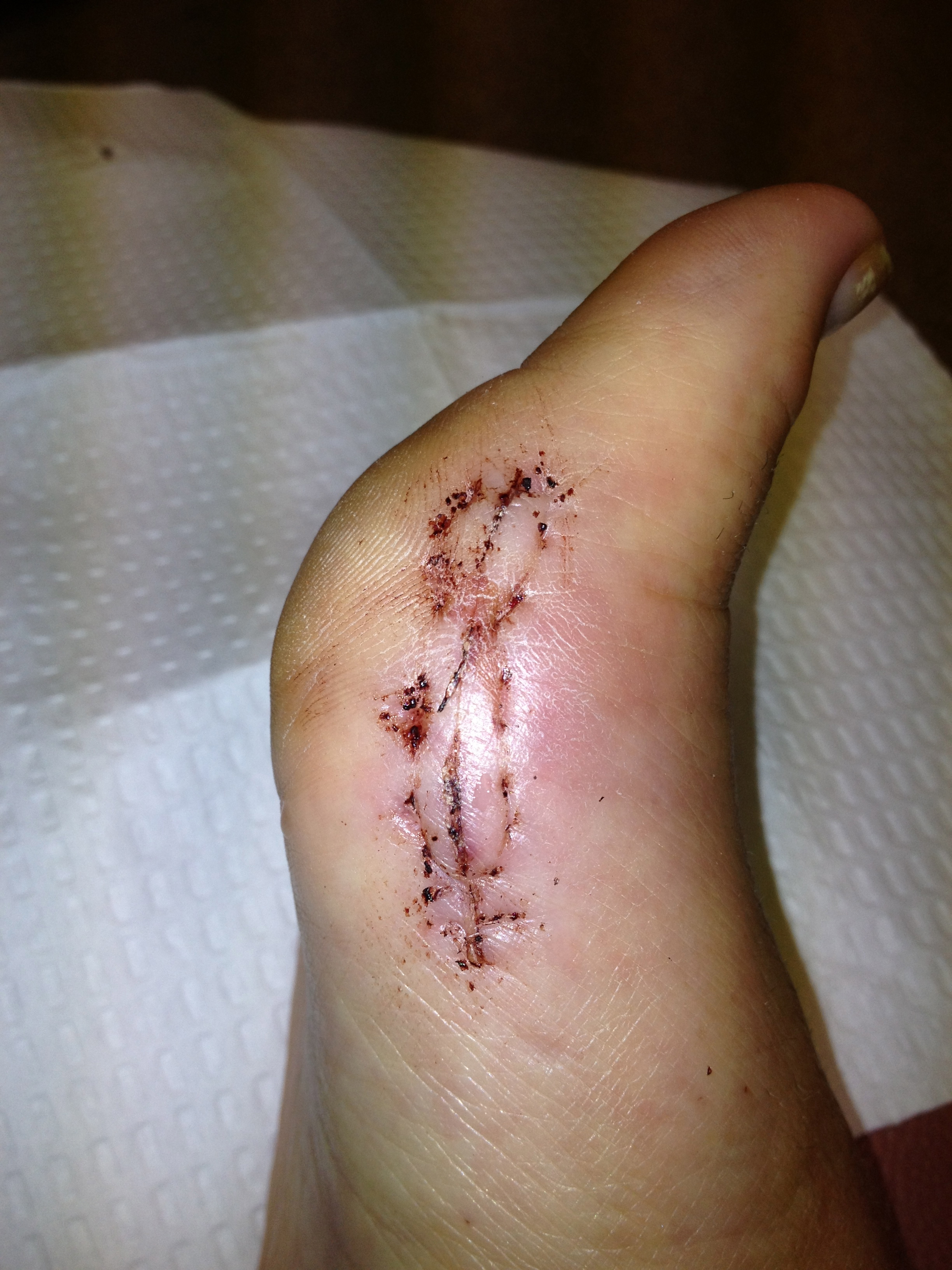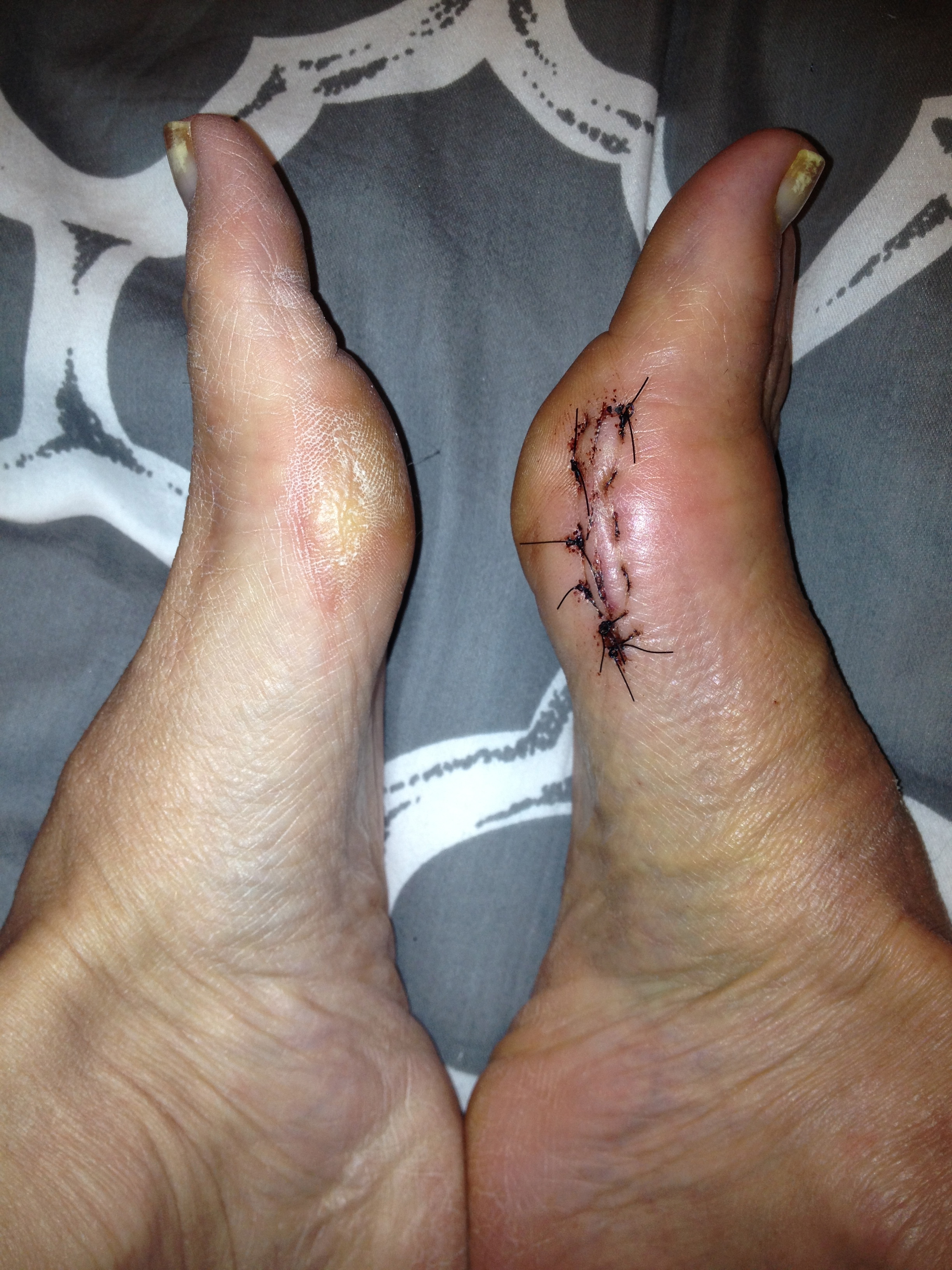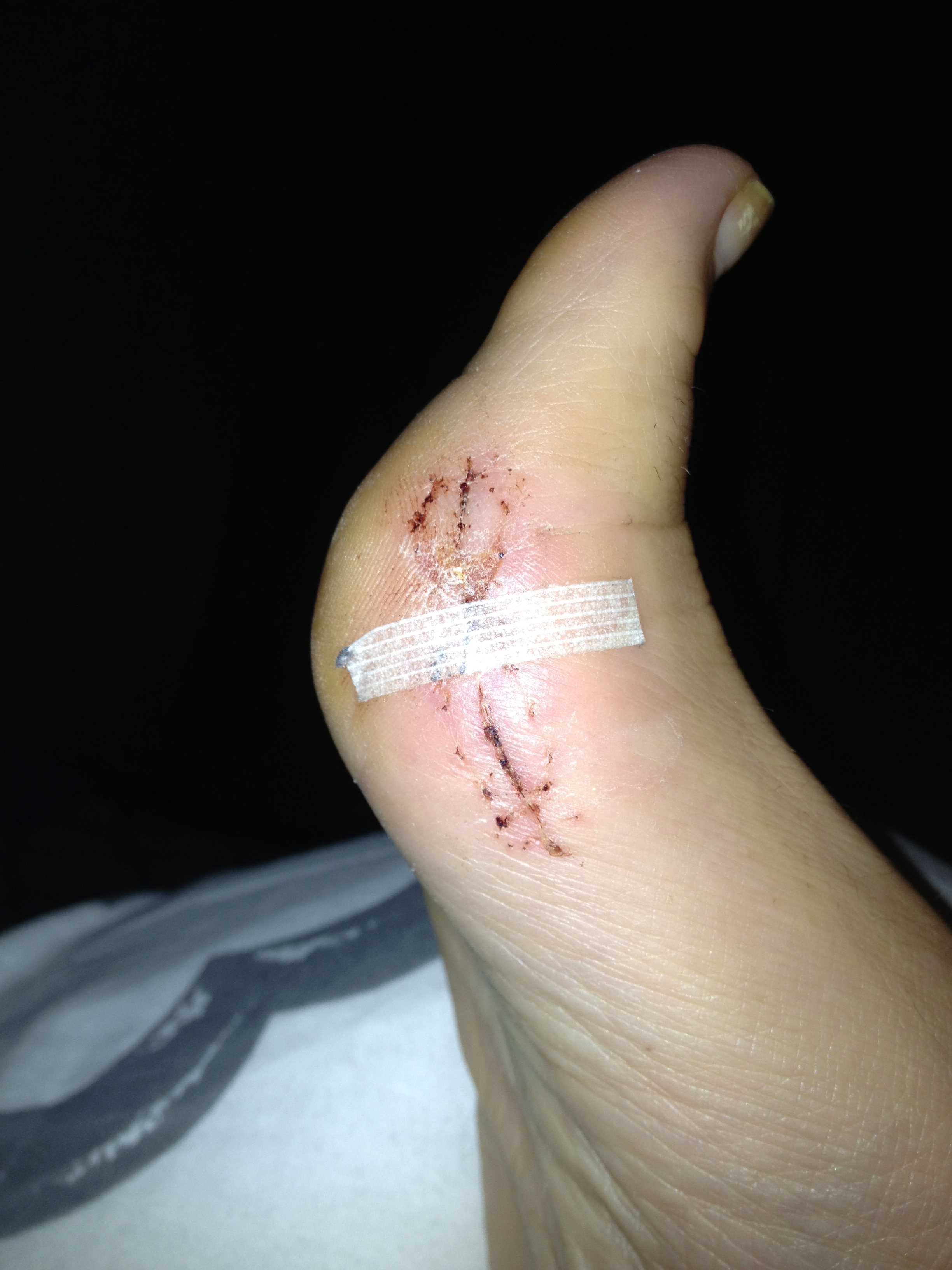 Incision is finally starting to heal and only because I didn’t follow doctors orders ;-)! He insisted I keep a bandaid on it at all times but advice from a nurse friend was to get some butterfly bandages to close it (it kept opening and oozing) get breathable bandages and cover ONLY when going out and wear only cotton socks…thought the sport socks I had were cotton but ends up they were polyester. After 2 days it is finally starting to scab up. Looking forward to being able walk again!